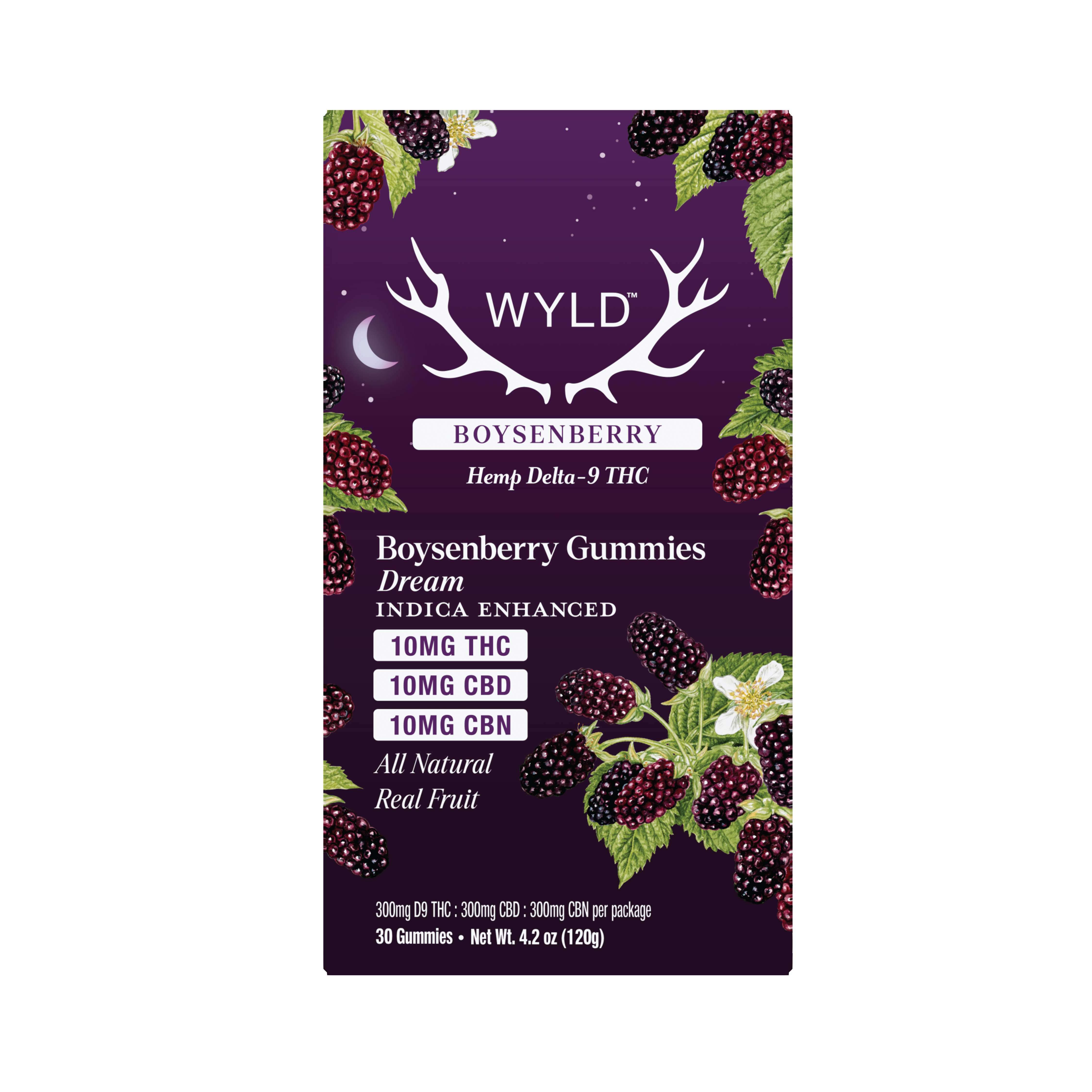 Wyld - Boysenberry 1:1:1 THC:CBD:CBN - Dream - 10mg THC per piece (300mg) 30ct