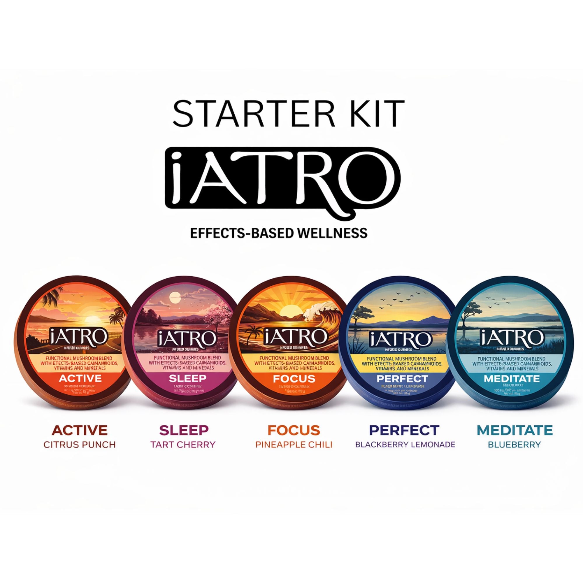 Together, these five formulas represent the complete iATRO system. Each gummy is built on the brandβs three-layer approach of cannabinoids, functional mushrooms, and precision nutrients, working together to support clarity, energy, calm, focus, and rest throughout the day.